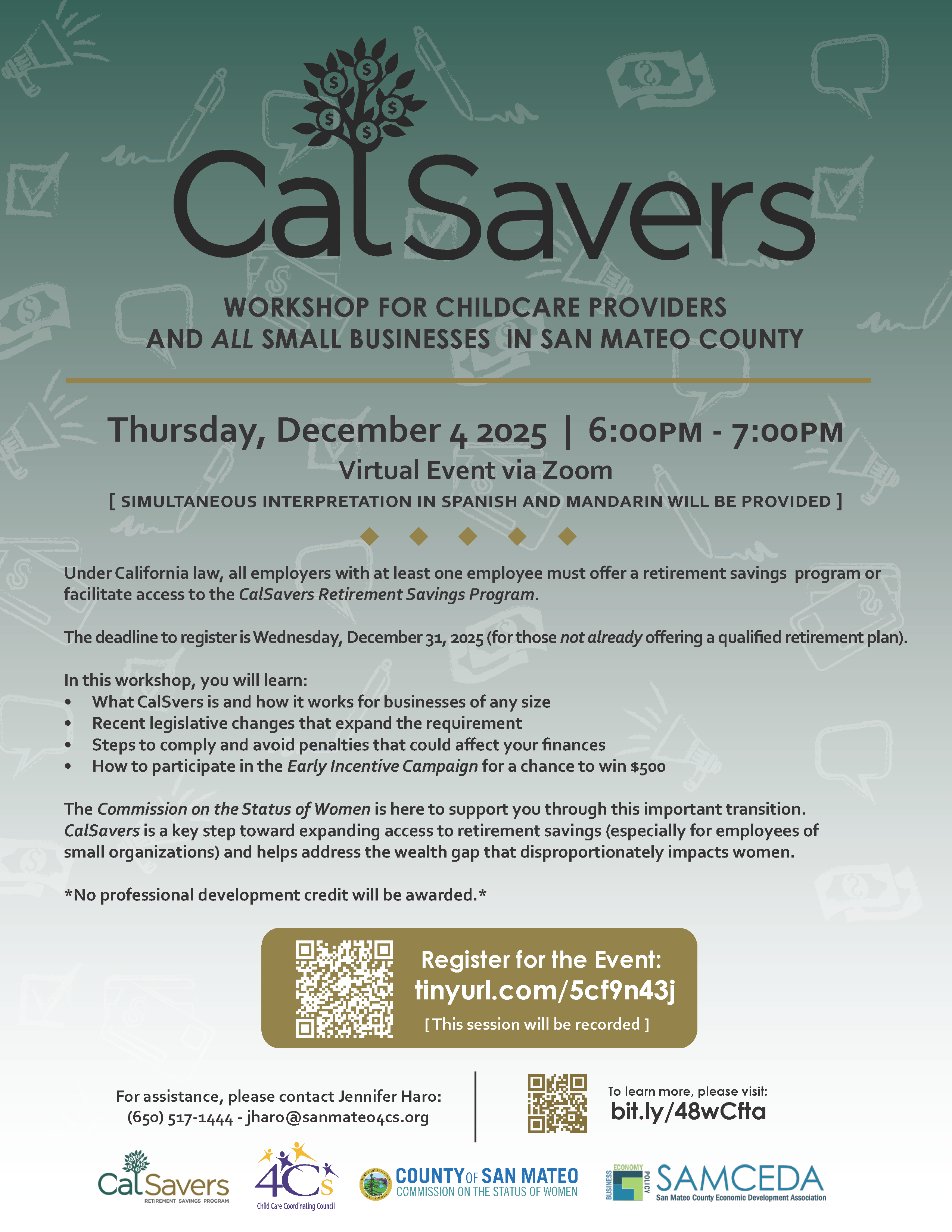 CalSavers: Workshop for Childcare Providers and Small Businesses (County of San Mateo's Commission on the Status of Women)
