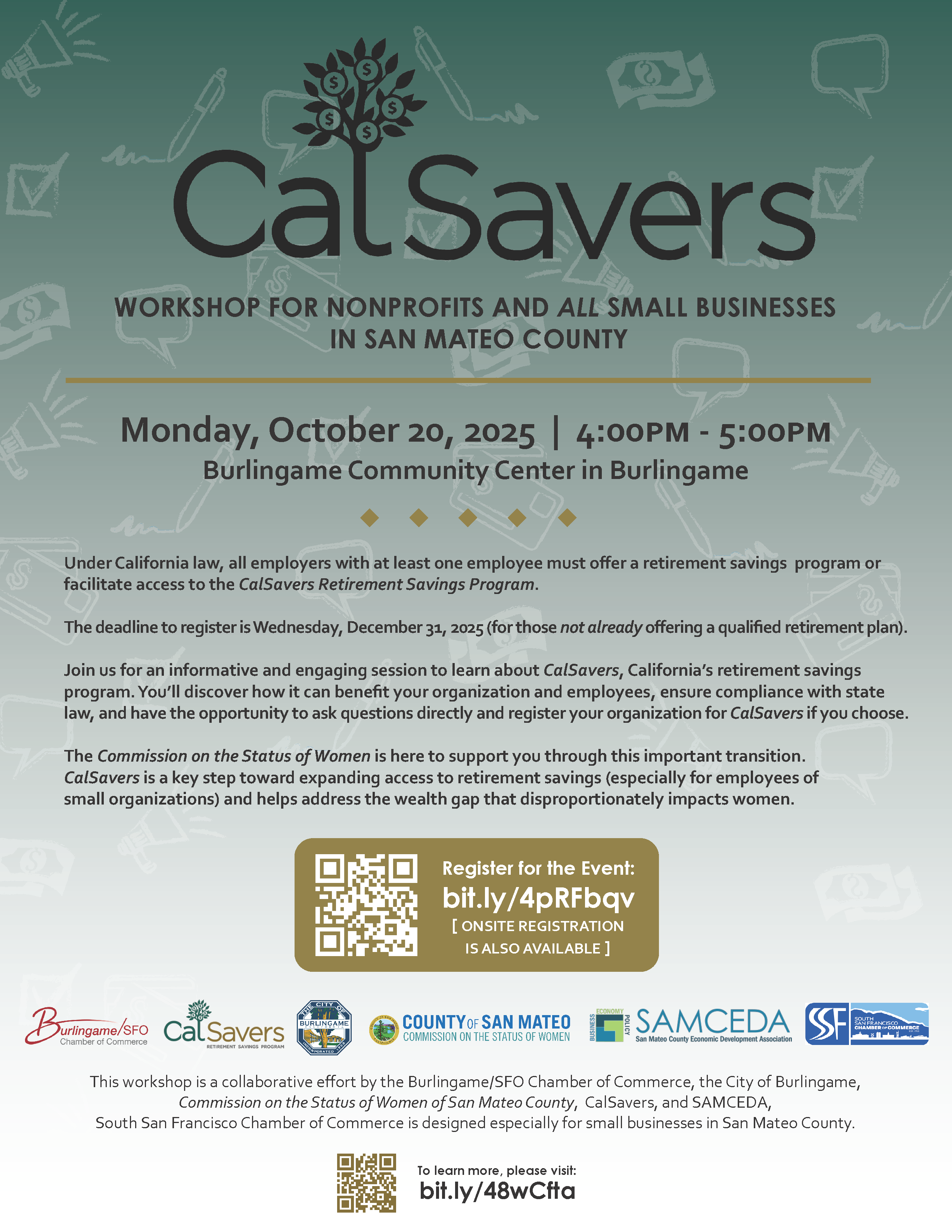 - Event: County of San Mateo's Commission on the Status of Women's CalSavers: Workshop for Nonprofits and Small Businesses