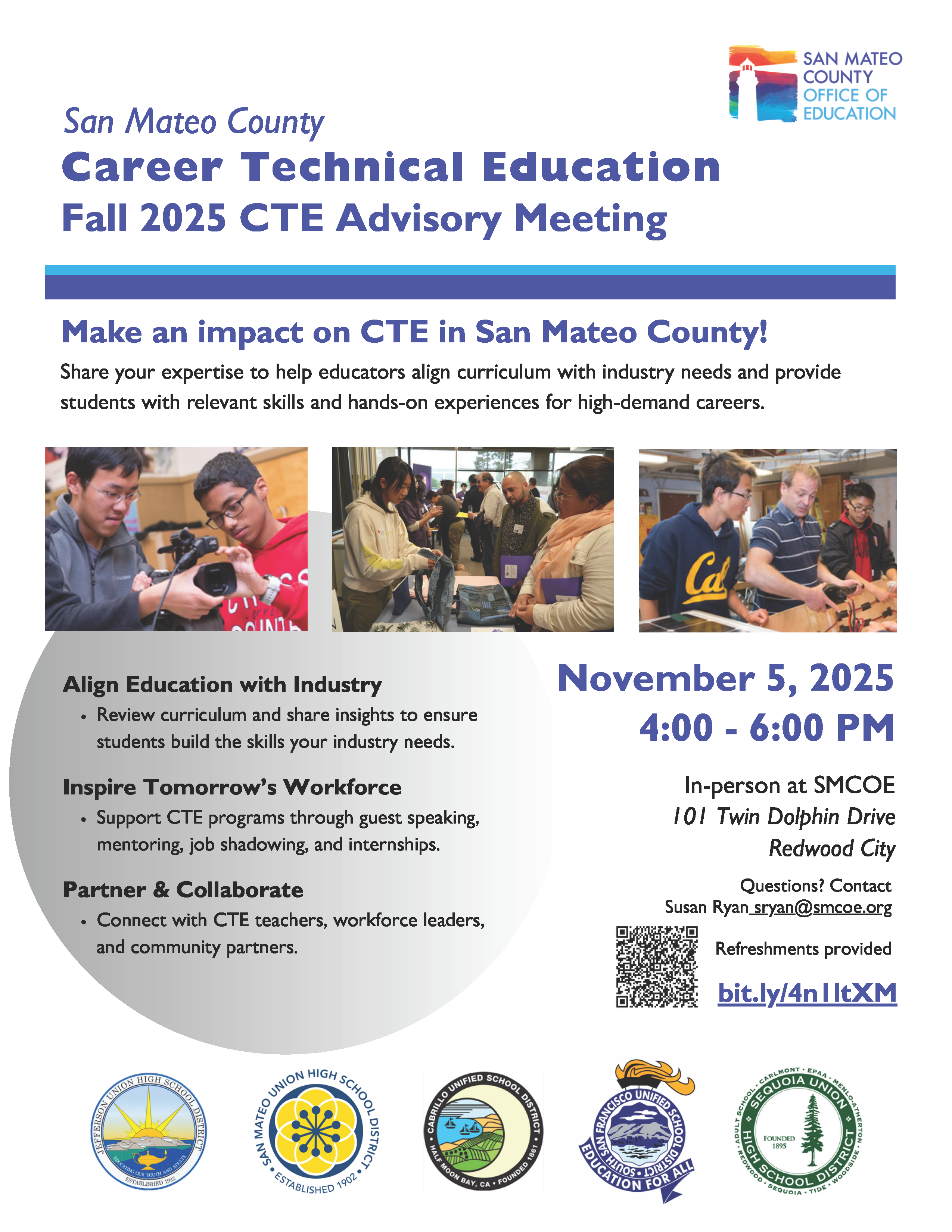 - Event: San Mateo County Office of Education's Career Technical Education - Fall 2025 CTE Advisory Meeting