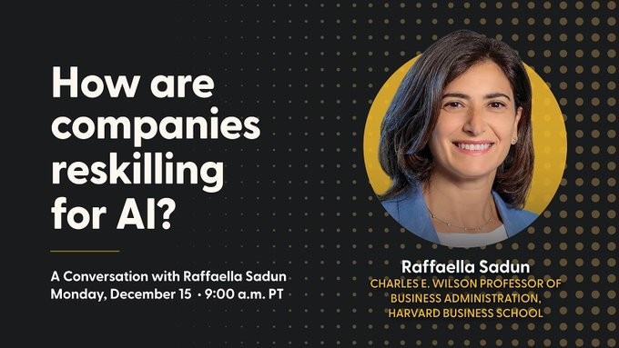 - Description: Please join us on December 15 for a live presentation on management and reskilling in the age of AI from Raffaella Sadun, Charles E. Wilson professor of business administration at Harvard Business School.