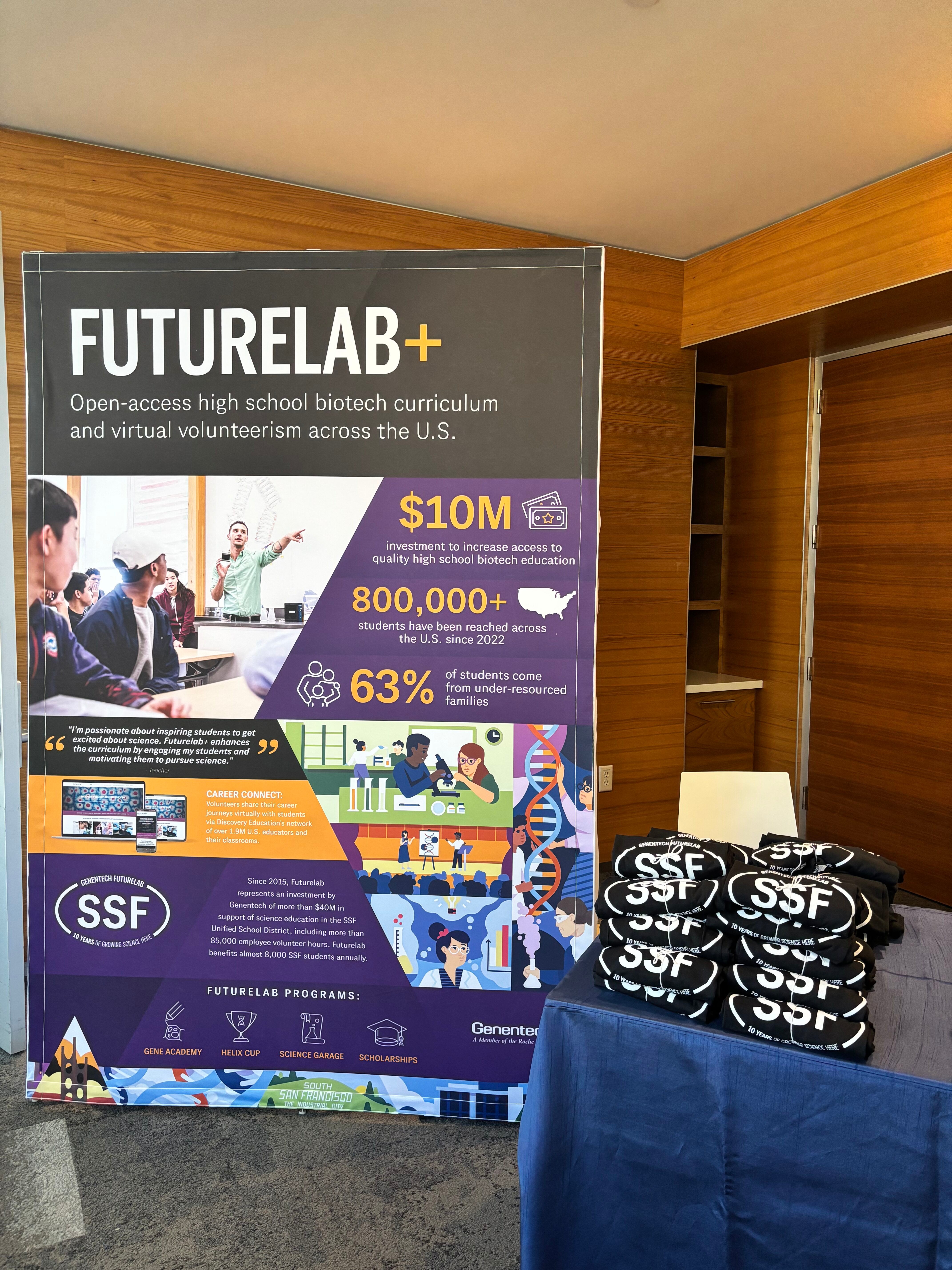 Futurelab is Genentech’s STEM education initiative that supports all 8,000 K-12 students in the South San Francisco Unified School District (SSFUSD) by getting them excited about science, boosting their skills and inspiring them to pursue careers in STEM.