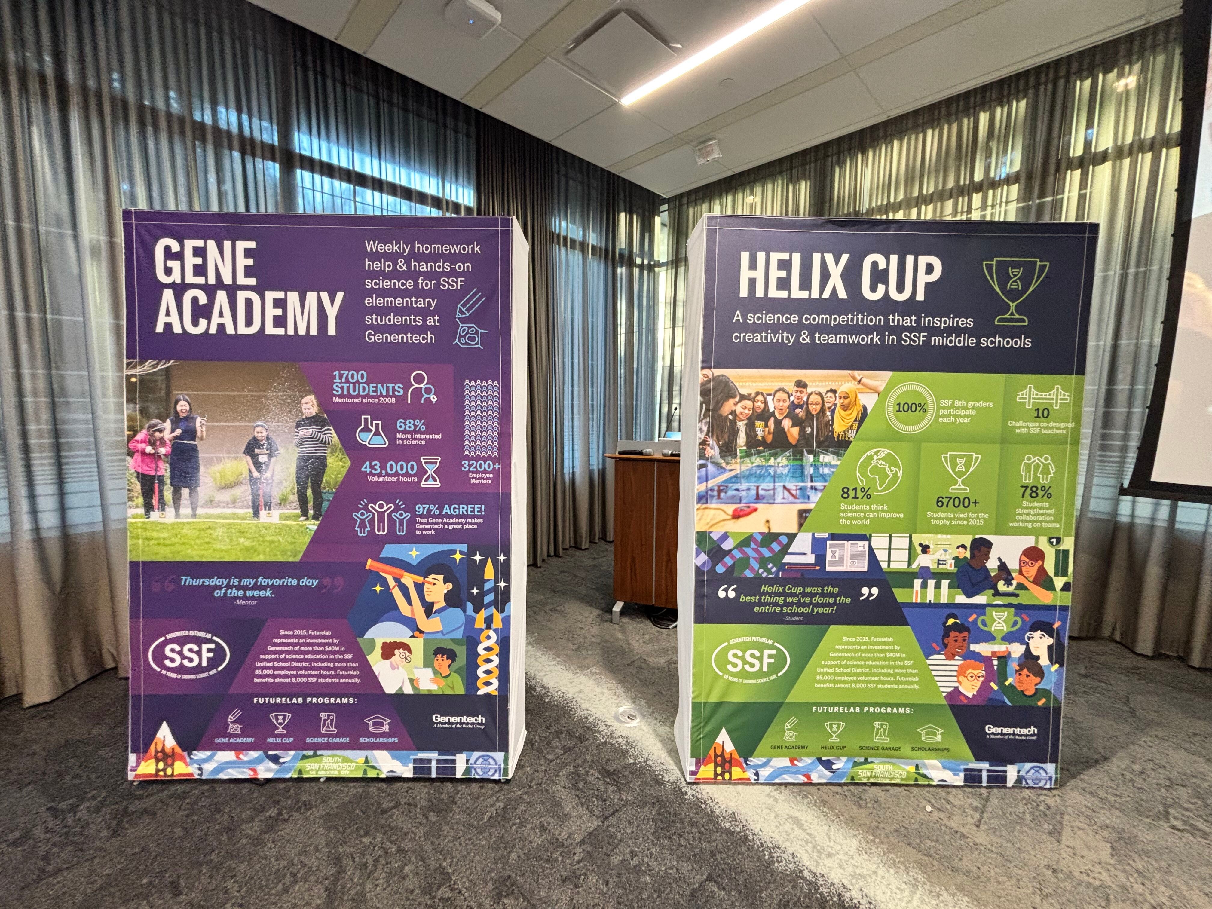 [ Futurelabs' Gene Academy is an after-school initiative providing mentoring for students in grades three to five, designed to cultivate interest and enthusiasm for science. Additionally, the Helix Cup engages every eighth-grade student from South San Francisco middle schools in an annual science competition that sparks collaboration, creativity, and hands-on learning. ]