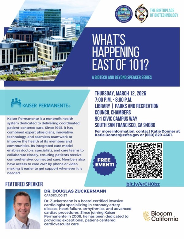 - Event: City of South San Francisco's What's Happening East of 101? Speaker Series ft. Kaiser Permanente